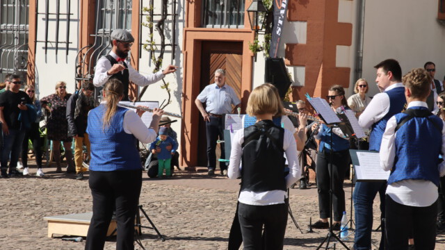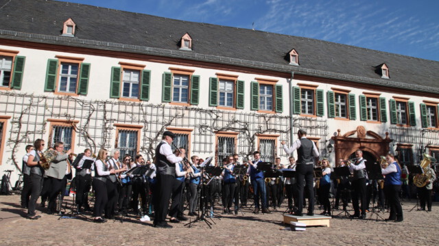 Bei bestem Wetter lockte das Osterkonzert der Stadtkapelle Seligenstadt wieder zahlreiche Besucher vor die Prälatur in den Klosterhof.